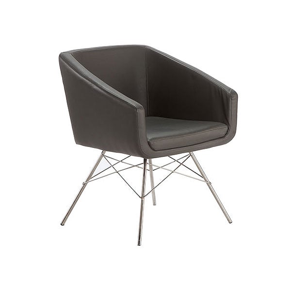 The Liames chair offers a sleek design with angular lines and polished chrome legs, making it a great fit for modern event spaces. Upholstered in durable faux leather and available in multiple colours, it provides a comfortable and stylish seating option for areas like lounges or press zones. Its lightweight build and easy-to-clean surface make it practical for temporary setups where flexibility is important.