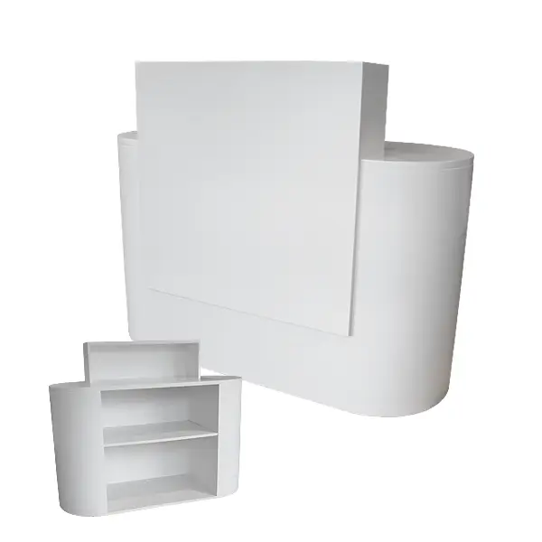 With a subtle nod towards the art deco area, this contemporary styled white reception desk makes the best impression for greeting VIPs and dignitaries alike.  The curved edges are easy on the eye and make this a fantastic choice for meet & greet areas.